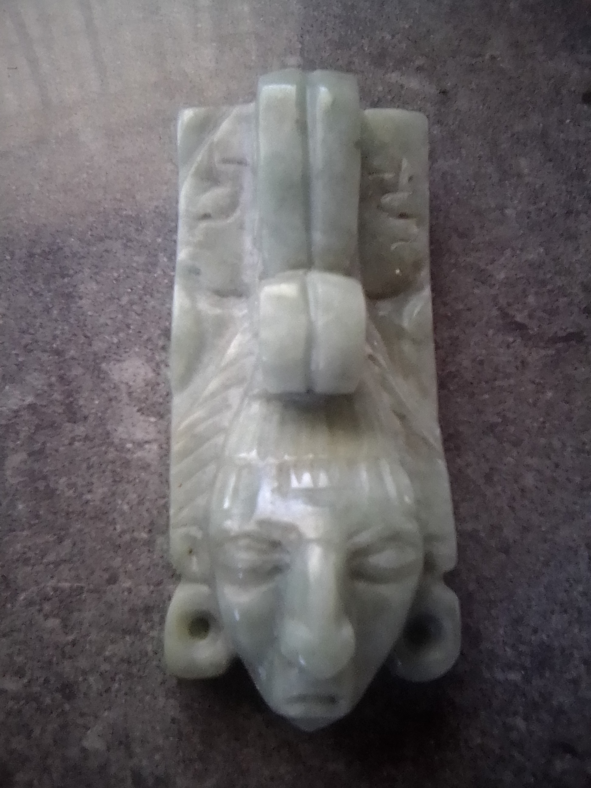 Colgante de jade con figura maya.