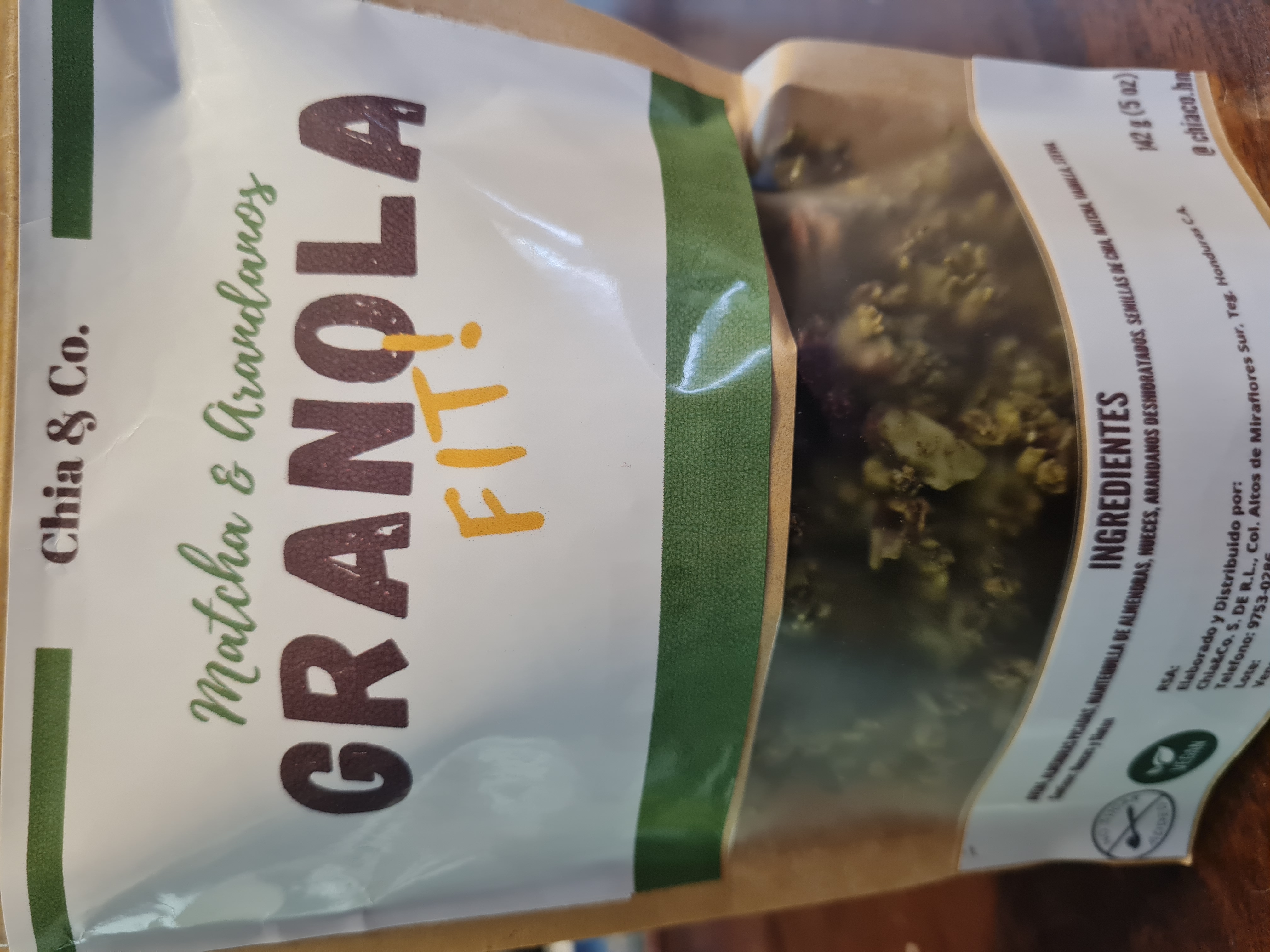 Granola de avena intergral, sin azucar ,colorantes ni preservantes añadidos.