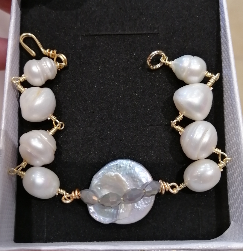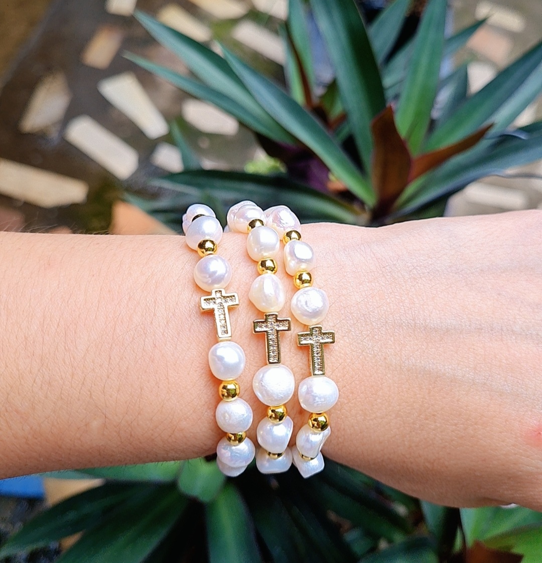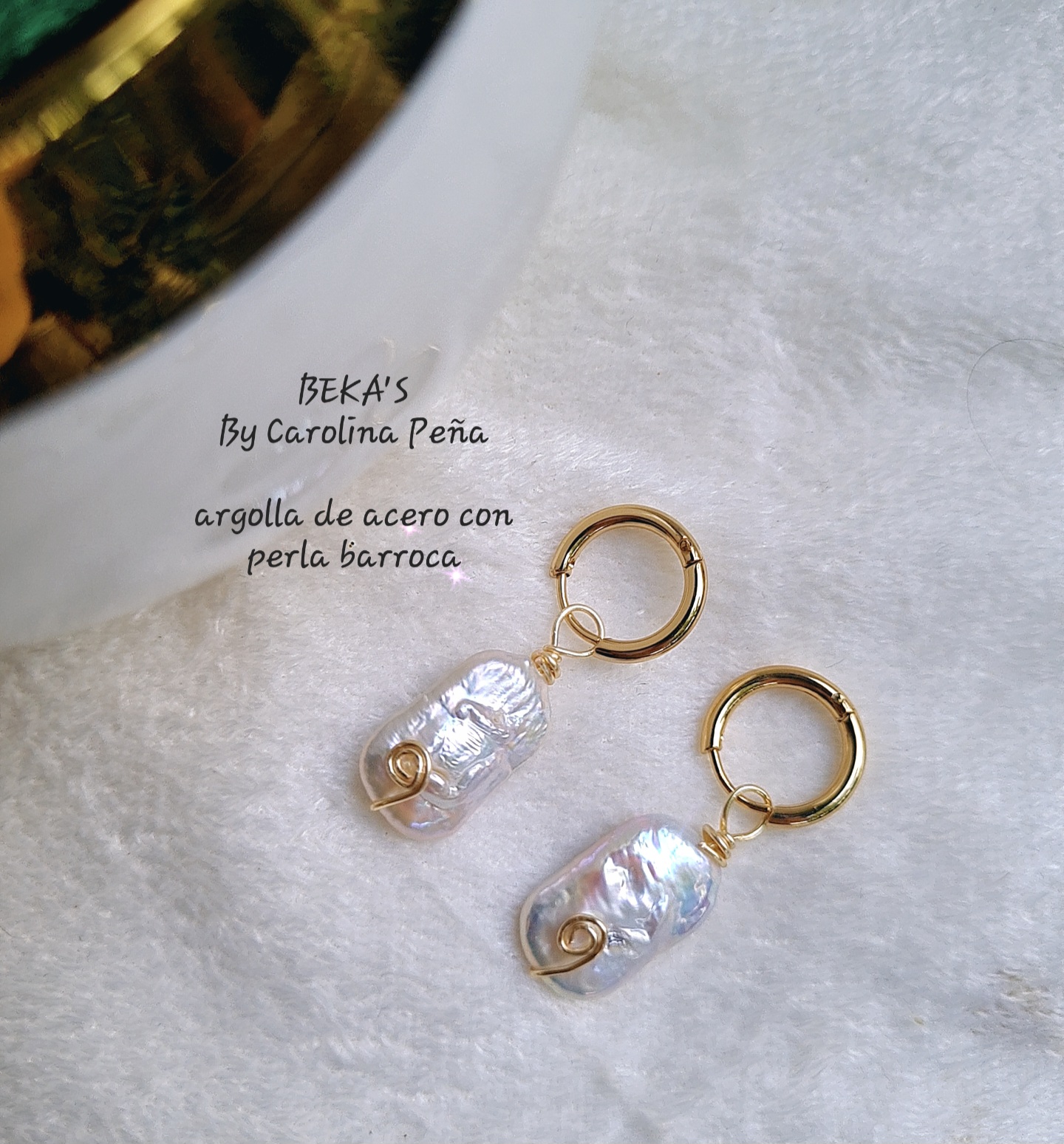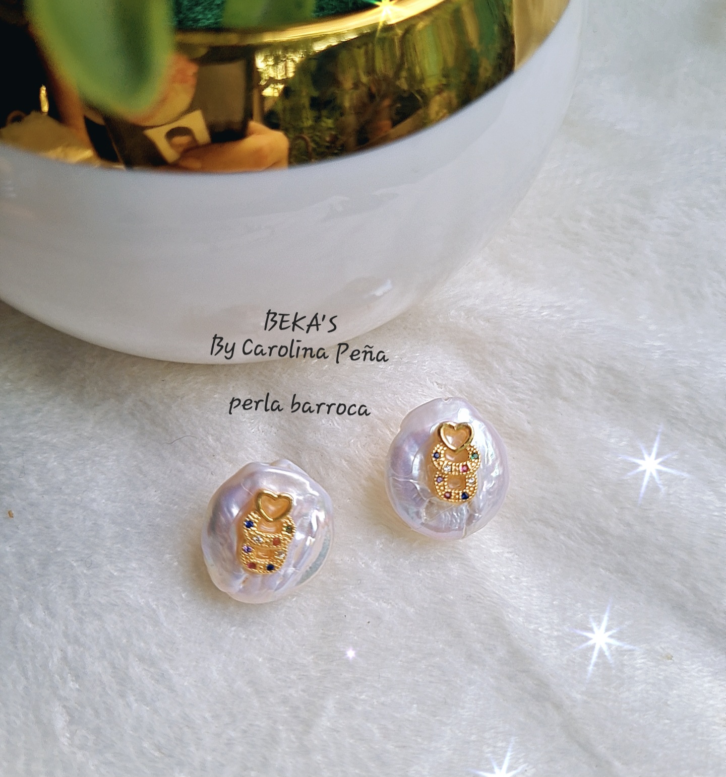 Arete base concha nacar con perla y cristal