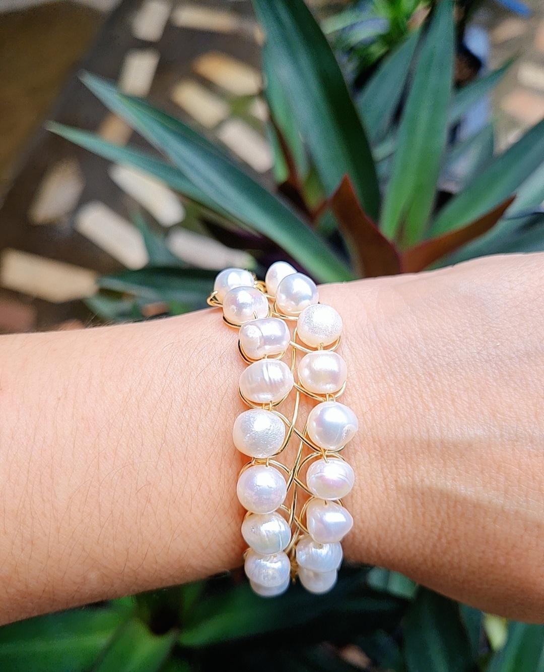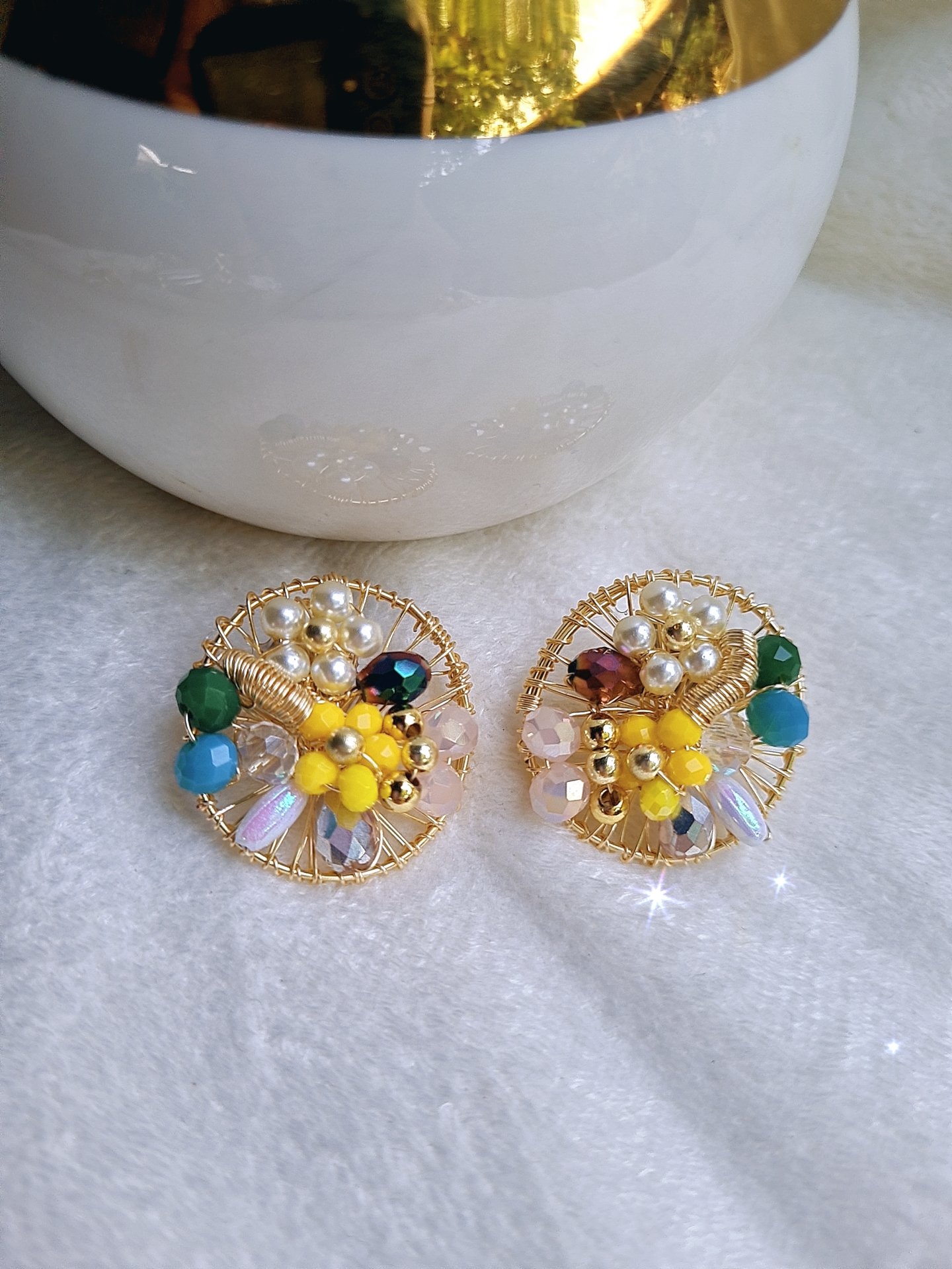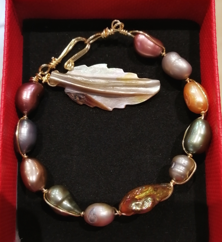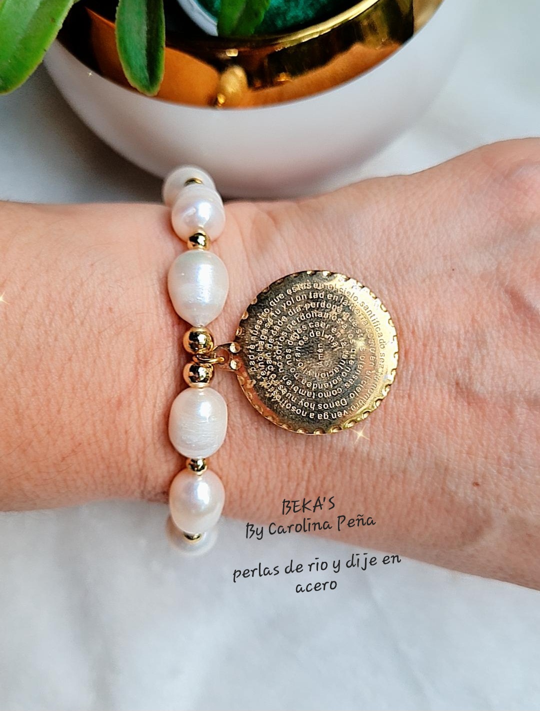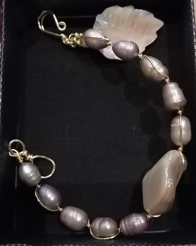Arete base concha nacar con perla y cristal