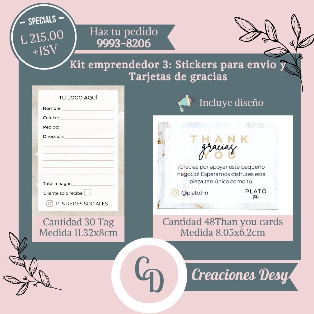 30 Tag de envio personalizado (Tamaño 11.32x8cm), 48 Thank you card personalizada (Tamaño 8.05x6.2cm) le incluye diseño.