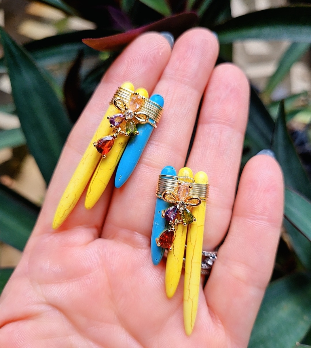 Arete base concha nacar y piedra turqueza